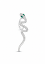 Le bijou d’oreille Serpy est un climber en forme de serpent en acier, entièrement pavé de strass, avec les yeux en strass vert, qui s’attache au lobe et se fixe sur le cartilage pour un effet grimpant saisissant.