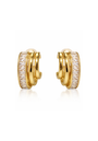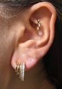 Puces en plaqué or, au design graphique à anneaux superposés, dont l’un est entièrement serti de strass taille baguette