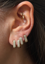 Ce sont des créoles ovales tronquées, larges, à moitié pavées avec trois rangs de strass.