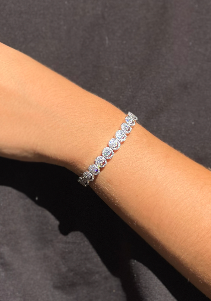 Bracelet Molly avec des visages ajourés pavés de zircons montés sur un fil élastique.
