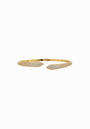 Le jonc Ryme est un bracelet manchette doré à l’or fin, ouvert sur le dessus, qui se termine par deux pointes décalées pavées de zirconiums, apportant une ligne graphique et structurée au poignet.