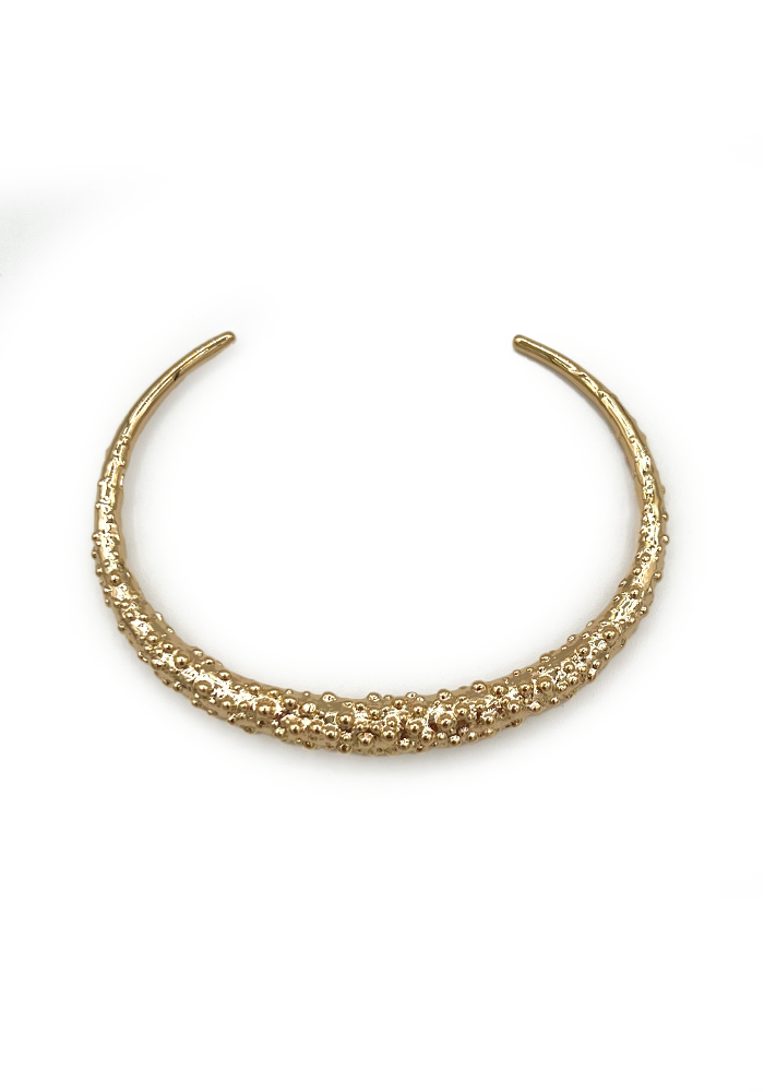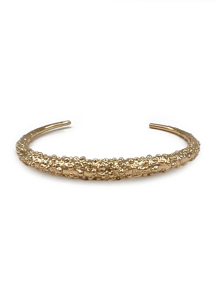 Jonc Cecil ouvert en plaqué or avec un effet granuleux.