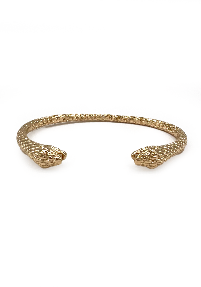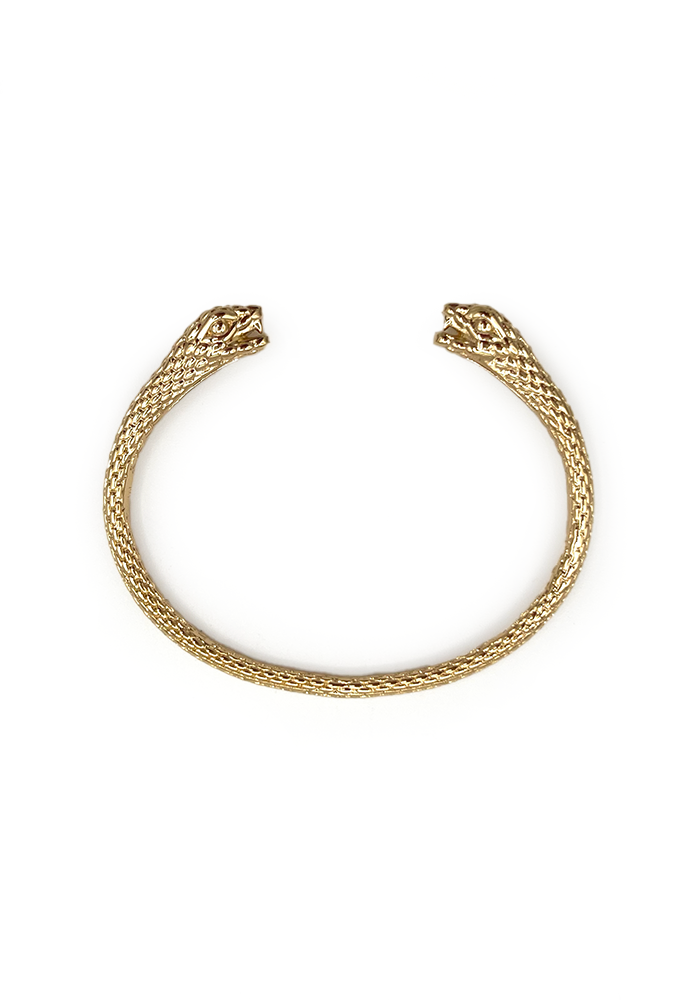 Jonc Mamba ouvert en plaqué or avec deux têtes de serpent.