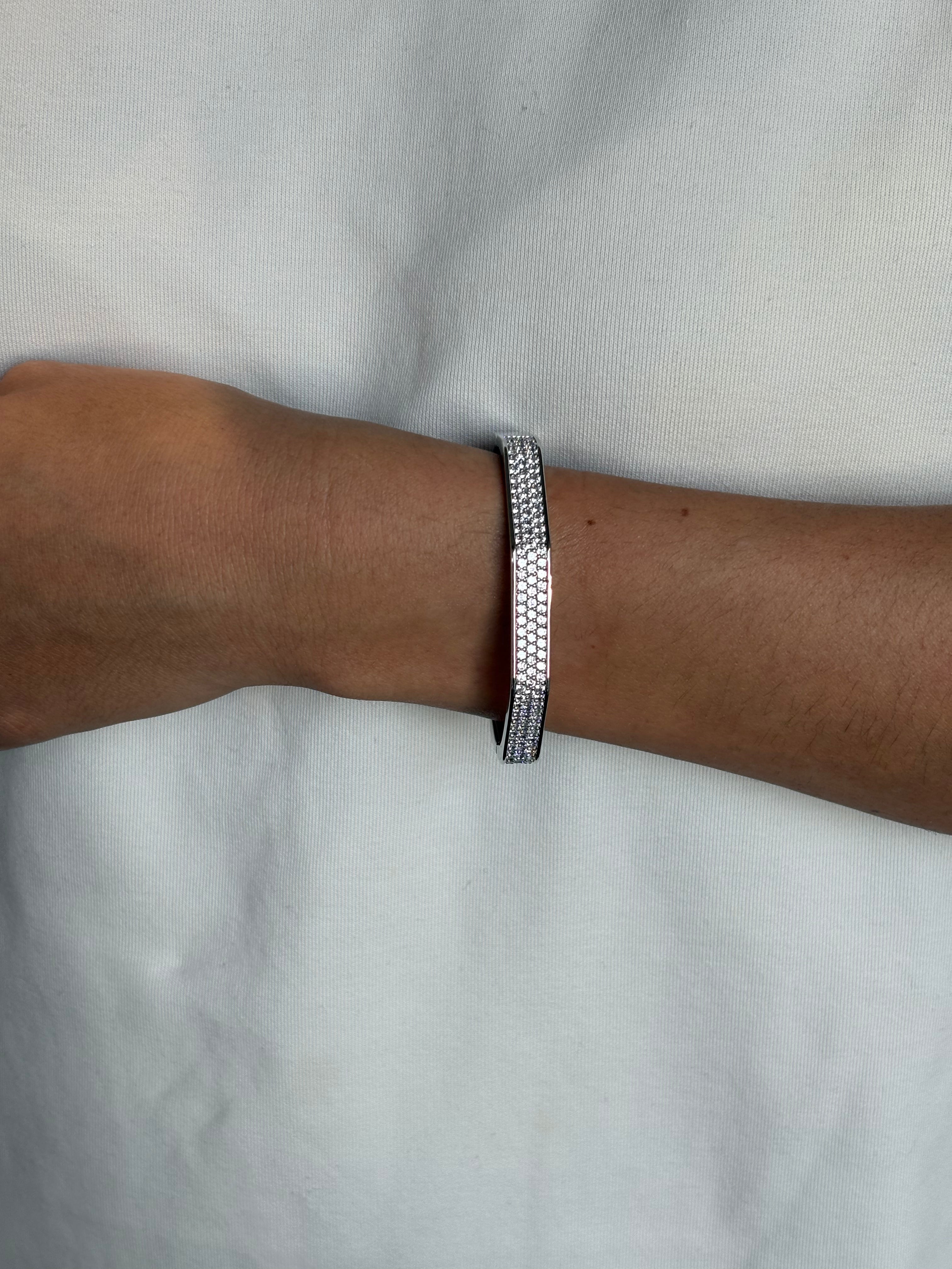 Bracelet manchette fermé entièrement serti de pierres scintillantes, avec une finition brillante et raffinée.
