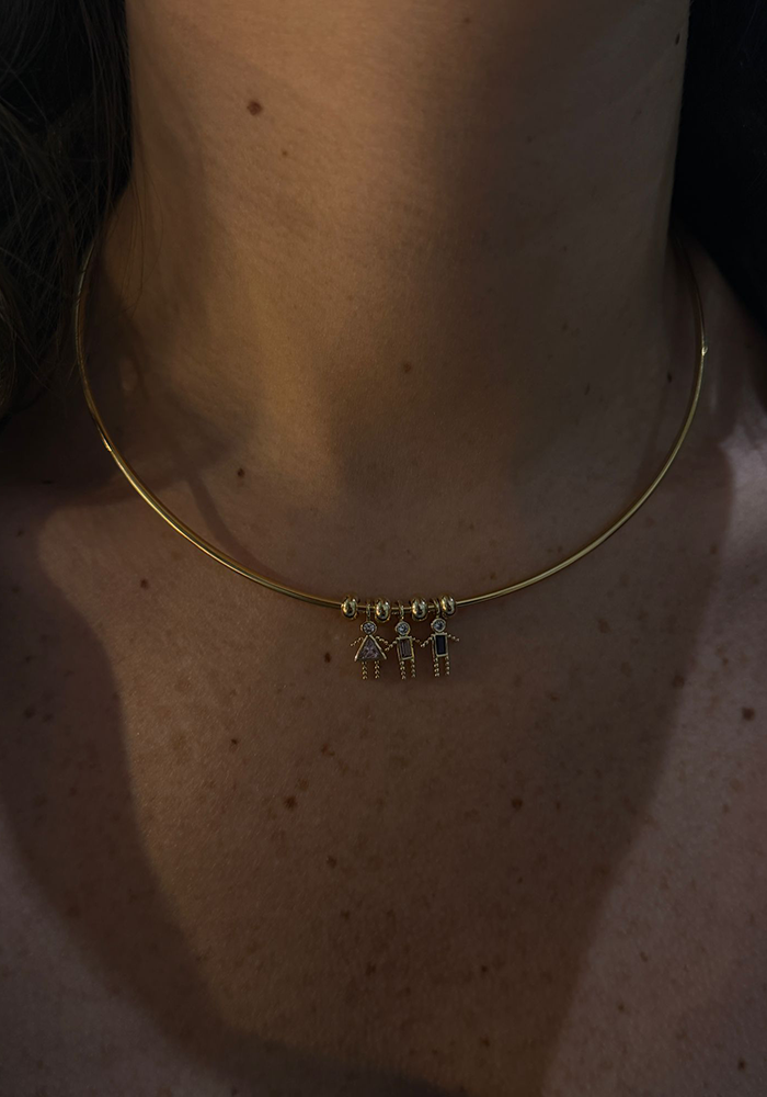 Le torque personnalisable est un collier doré à l'or fin, pensé pour accueillir des charms et créer un bijou personnalisable à l'infini.